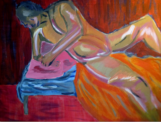Oma versio Lemminkäisen äidistä (Akseli Gallen-Kallela). Ehdottomasti yksi suosikki teoksistani ikinä ja ensimmäinen taideteos johon rakastuin lapsena. Minä olin vielä viime hetkelläkin luopumassa tästä ideasta, käyttää kyseistä teosta tähän tehtävään. Onneksi minua kannustettiin ja uskalsinkin tarttua pensseliin. Oma versio valitsemastaan taideteoksesta ei saanut olla kopio alkuperäisestä, vaan omanlainen muunnelma. Ja kuka nyt hyvää lähtisi uudelleen tekemäänkään.